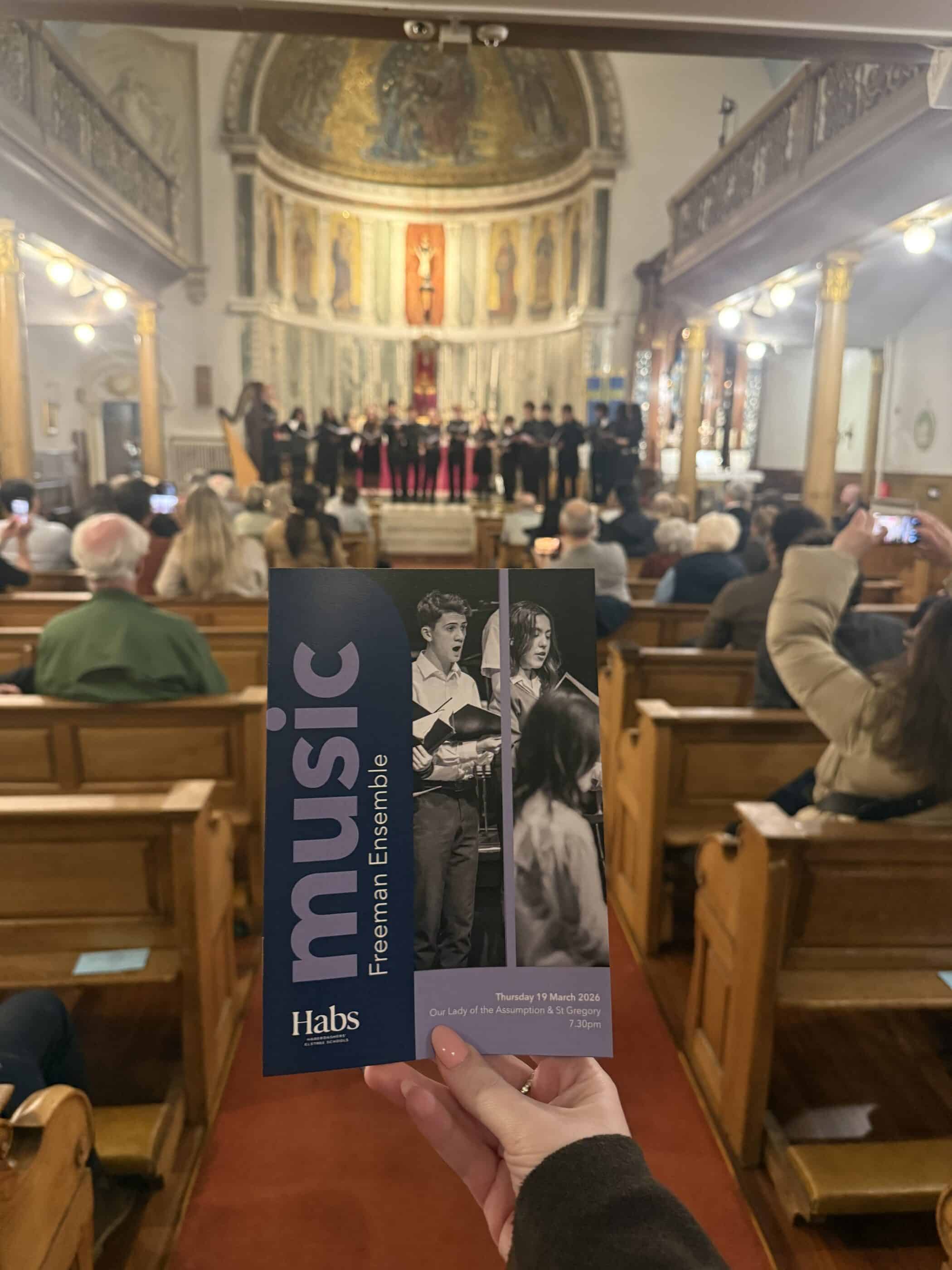 What began in 2023 as a small barbershop quartet has, in just three years, evolved into one of the school’s most inspiring student led musical ensembles. The choir, founded and directed entirely by students, with Nathan (U6R1) at the helm, has doubled in size year on year, growing from four singers to the seventeen voice group performing in the Our Lady of the Assumption, Warwick Street, recital.