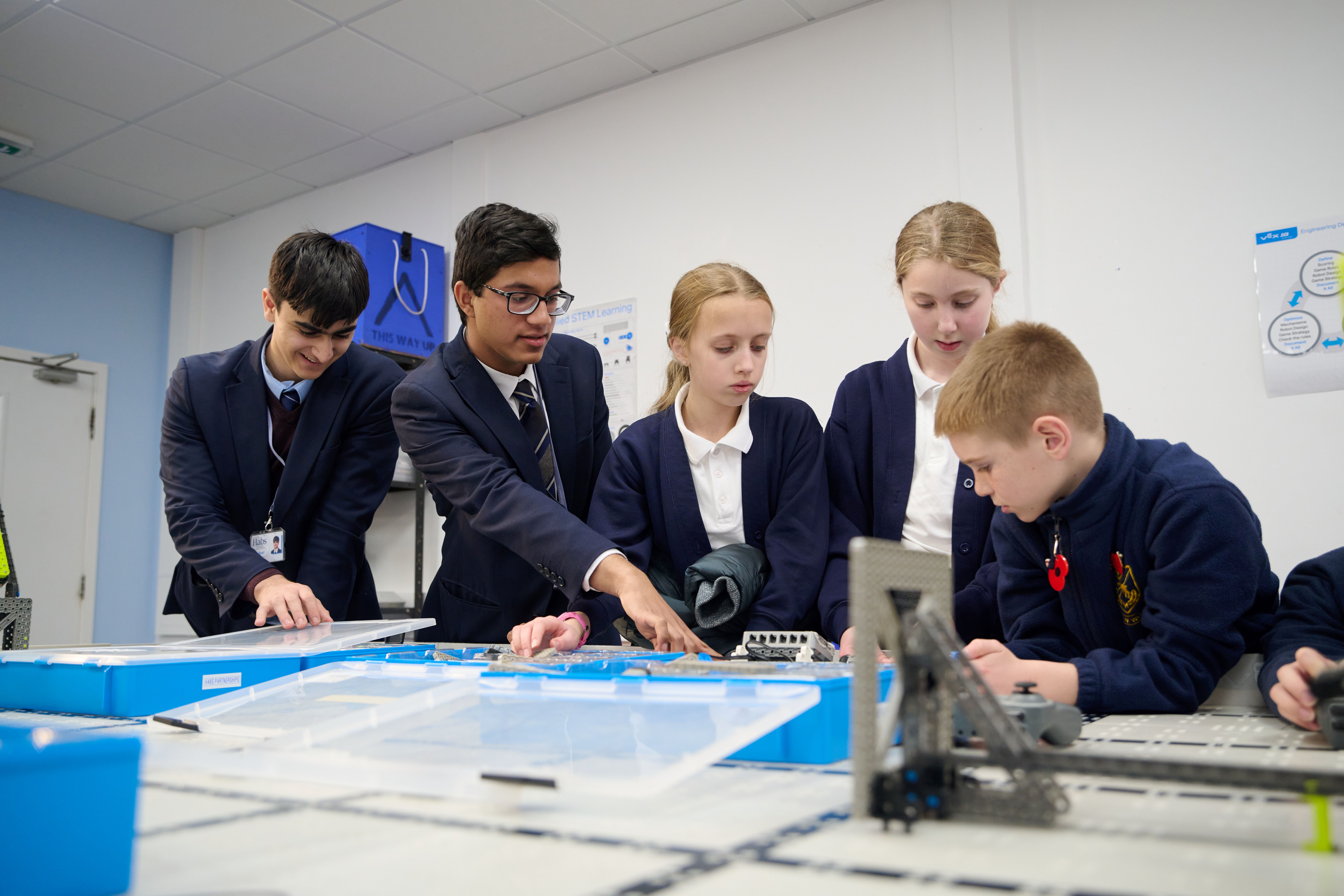During his visit, Councillor Newmark saw London Academy Year 5 pupils completing their KS2 swimming assessments in the Habs Girls pool, supported and encouraged by our Sixth Form students. He then visited Habs Boys, where Sixth Form mentors led Monksmead Year 5 pupils through an exciting science experiment, turning hot milk into the protein casein using vinegar.